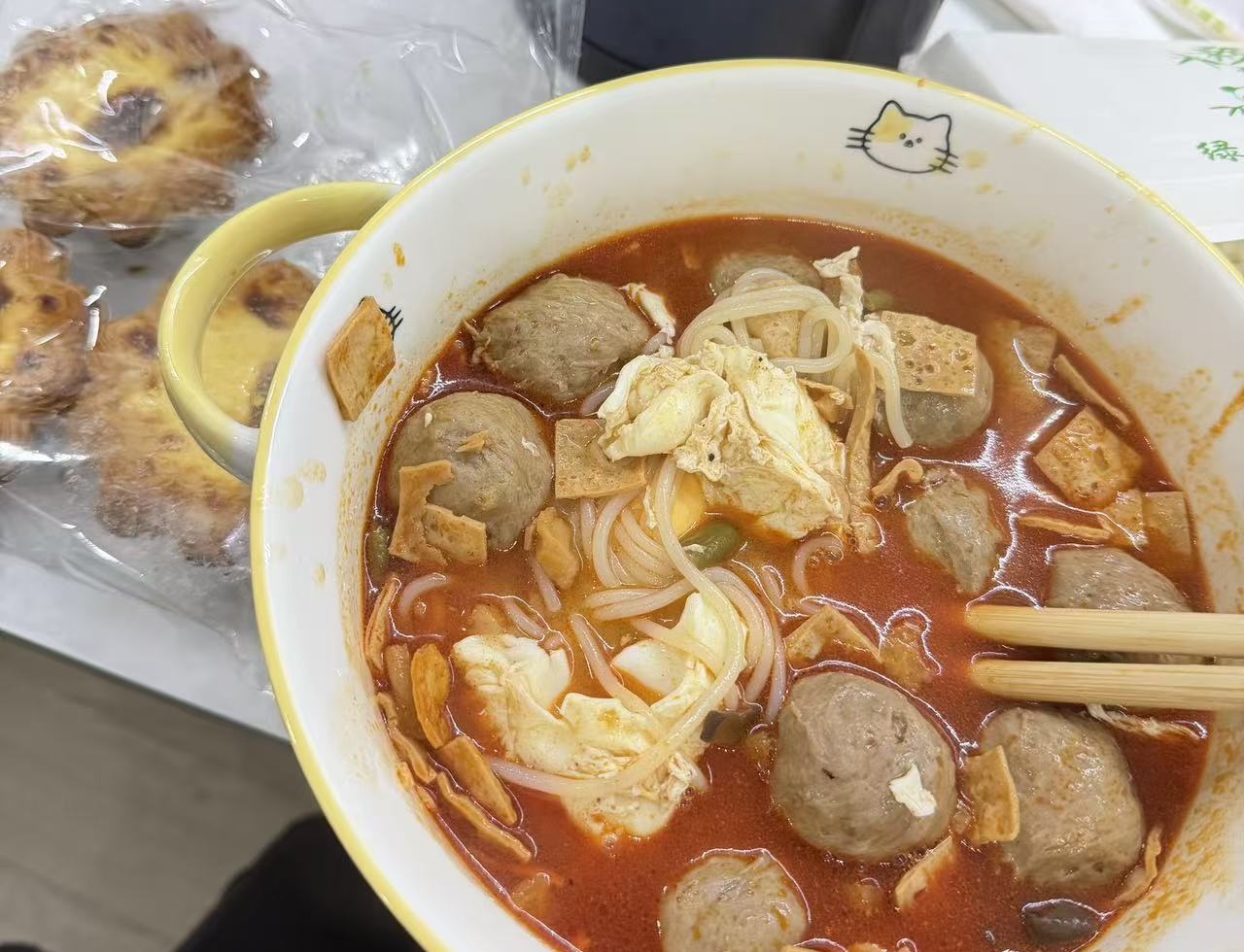 工作日的夜宵,他最爱韩式炸鸡——甜辣的酱汁裹着酥脆外壳,一口咬下去,油脂和肉汁在嘴里炸开,再配一杯奶茶,香甜浓郁。到了周五,他会彻底放开:炸鸡、汉堡、米线摆满一桌,还要再加一个蜜雪冰城的大圣代。