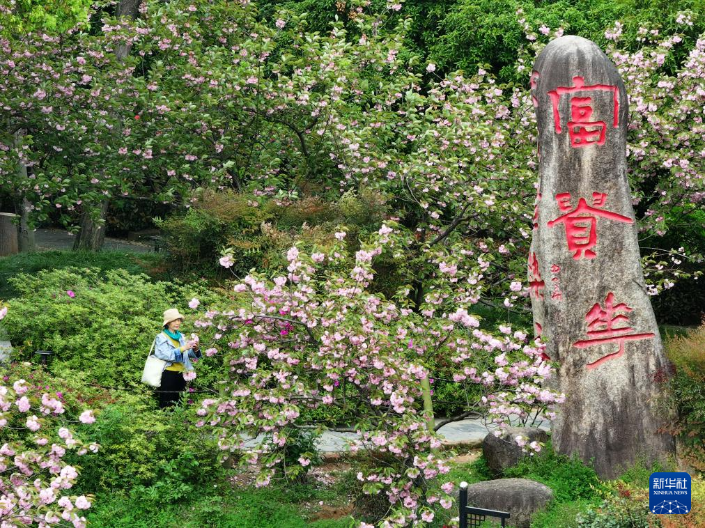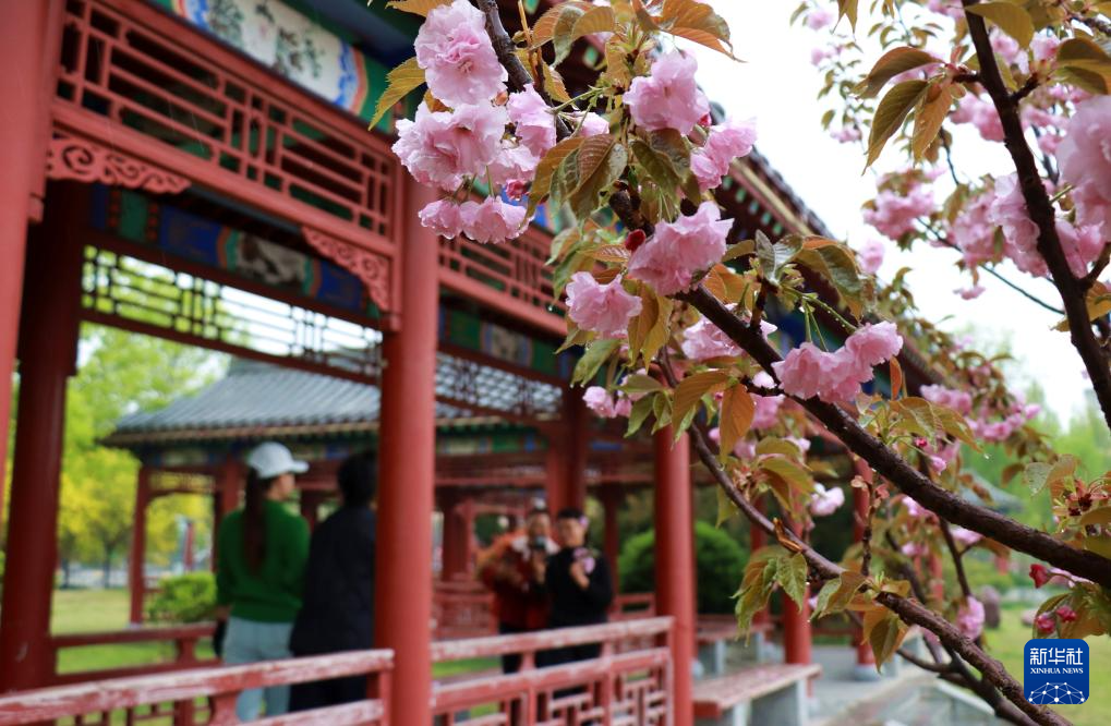 4月8日,游客在河南省安阳市内黄县硝河游园打卡拍照。新华社发(刘肖坤摄)