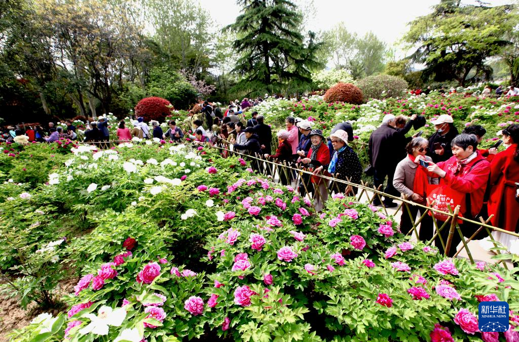 4月8日,人们在江苏省徐州市云龙公园牡丹园赏花游览。新华社发(蒯创摄)