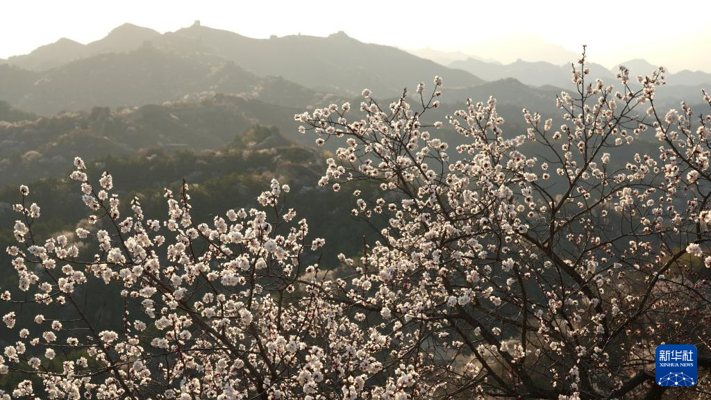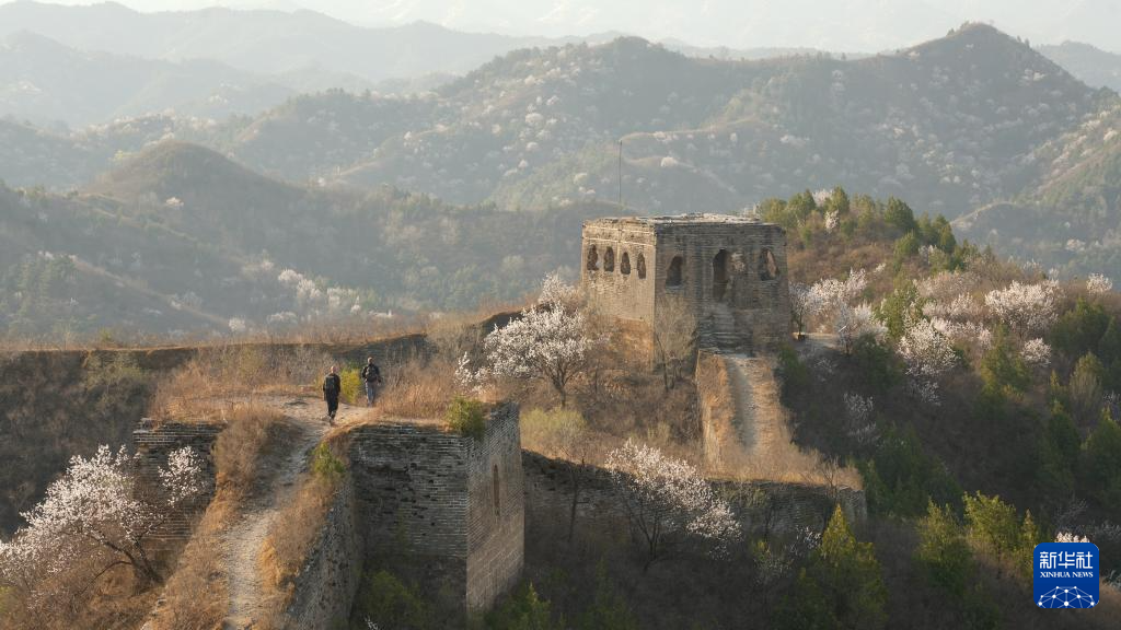这是各地4月8日在北京市密云区古北口镇拍摄的蟠龙山长城春景。新华社发(周万平摄)