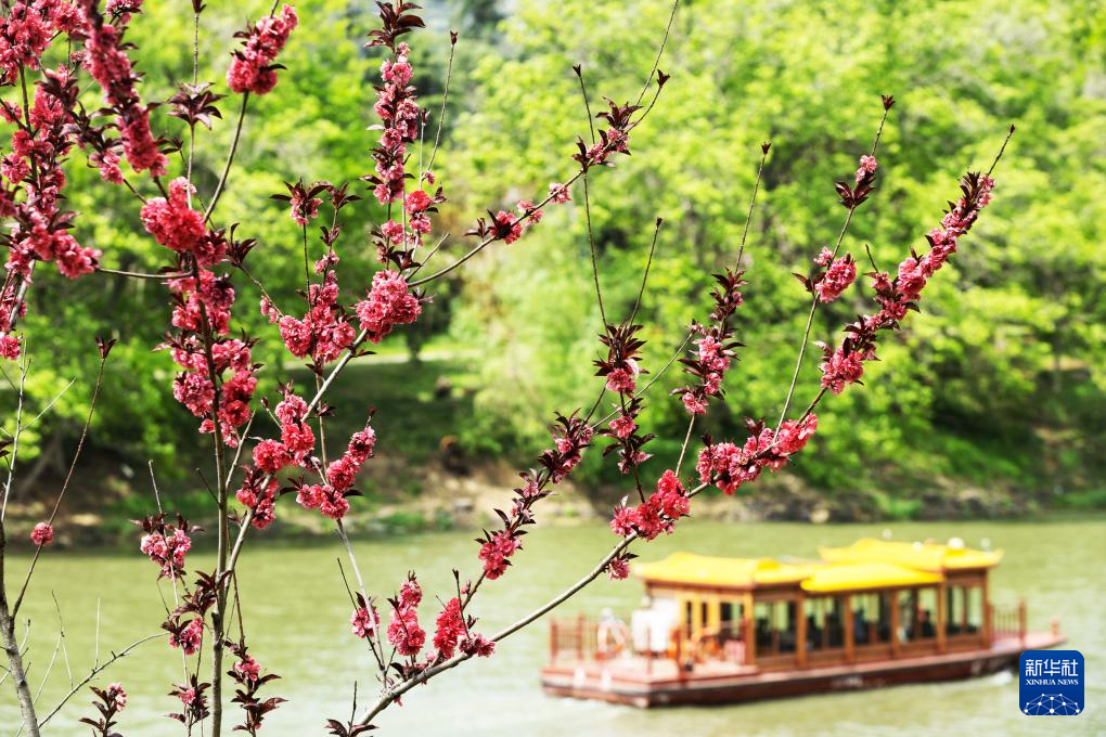 4月8日,山河游客乘坐画舫在江苏南京外秦淮河上赏景游玩。向暖新华社发(孙忠南摄)